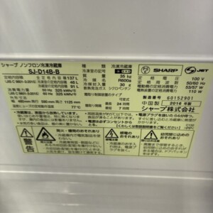 今回は宮崎県えびの市大字向江にお住まいの50代男性より、SHARP(シャープ) ノンフロン冷凍冷蔵庫 SJ-D14B-BB(2016年製)の出張買取をご依頼いただきました。