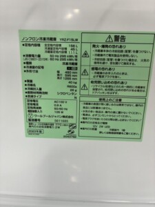 沖縄県那覇市真嘉比から出張買取 REFAGE ノンフロン冷凍冷蔵庫 YRZ-F15LW 2023年製 査定しました。