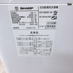今回は大月市にお住まいの30代女性より、シャープ全自動洗濯機 ES-GE6C-W(2019年製)を出張買取にてご依頼いただきました。