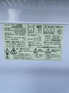 SHARP(シャープ)271L 2ドア冷蔵庫 SJ-PD27D-W 2018年製◆査定について◆