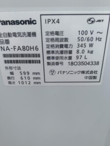 Panasonic(パナソニック)8.0㎏ 全自動洗濯機 NA-FA80H6 2018年製