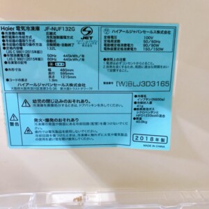 西尾市でHaier冷凍庫 JF-NUF132Gを出張買取 2018年製・引き出し式で人気モデルを査定しました
