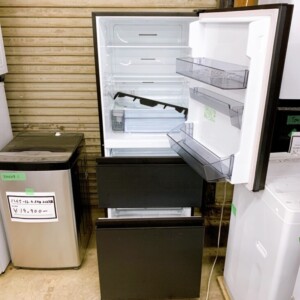 お預かりした冷蔵庫は、外装にごく軽い擦れがある程度で、全体的にきれいな状態でした。庫内は清掃済みでニオイや汚れもなく、各棚や引き出しも欠損はありません。動作確認でも冷却機能は正常に稼働していました。