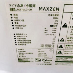 四日市市でMAXZEN冷蔵庫 JR087ML01GM を出張買取|2023年製の美品で高価査定