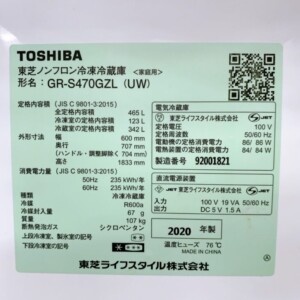 今回は生駒市にお住まいの30代ご夫婦様より東芝 ノンフロン冷凍冷蔵庫 GR-S470GZL(465L・2020年製)を出張買取にてご依頼いただきました。