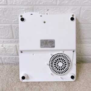 お送りいただいたIHコンロは外観に目立った傷や汚れはなく、非常にきれいな状態でした。加熱ボタンや温度調整機能も問題なく動作し、ファンの回転音も正常でした。裏面の通気口や底部も清掃されており、使用感がほとんど感じられない状態でした。