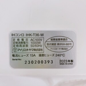 今回は大阪府八尾市にお住まいの40代男性より、アイリスオーヤマ IHコンロ IHK-T36-W(2023年製)を出張買取にてご依頼いただきました。