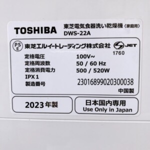 今回は長崎県壱岐市にお住まいの30代女性より東芝 食器洗い乾燥機 DWS-22A(2023年製)を出張買取にてご依頼いただきました。