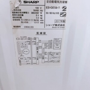 大阪府堺市にてSHARP 全自動洗濯機 ES-GE5B-T(2017年製)を出張買取しました|5.5kgモデル