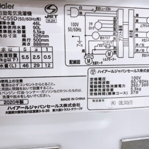 今回は牛久市にお住まいの40代ご夫婦より、ハイアール 全自動洗濯機 JW-C55D(2020年製・5.5kg)を出張買取にてご依頼いただきました。