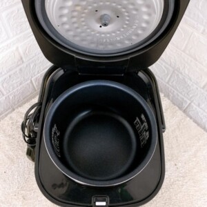 内部の釜・天面ともに傷や焦げ付きがほとんど見られず、全体的にきれいな状態でした。動作確認も問題なく、付属の内釜や電源コードも揃っておりました。