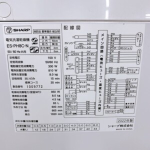 今回は埼玉県入間郡三芳町にお住まいの30代女性よりシャープ 電気洗濯乾燥機 ES-PH8C-N(2022年製)を出張買取にてご依頼いただきました。