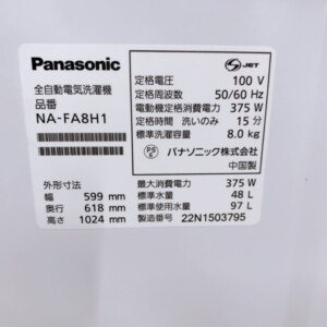 お引き取りしたNA-FA8H1は動作確認済みで、全体的にきれいな状態でした。外装に目立つ傷やへこみはなく槽内部も使用感が少なく良好。排水ホースや電源コードなどの付属品も揃っており、そのまま再販可能なコンディションでした。