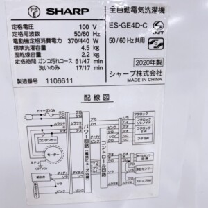 今回は埼玉県蓮田市にお住まいの30代女性よりSHARP 全自動電気洗濯機 ES-GE4D-C(2020年製・4.5kg)を出張買取のご依頼いただきました。