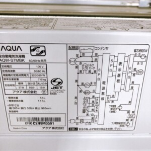 埼玉県川口市でAQUA 7.0kg洗濯機 AQW-S7MBKを出張買取 使用感少なめで適正査定しました