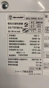 今回は新潟県三条市にお住まいの30代女性主婦より、SHARP 電気洗濯乾燥機 ES-T5FBK-N(2021年製/洗濯5.5kg・乾燥3.5kg)の出張買取をご依頼いただきました。日常使いに配慮したヒーター乾燥と、使い勝手の良いトップオープン型が特長のモデルです。