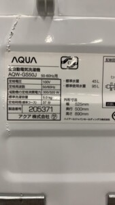 羽曳野市へAQUA AQW-GS50J 洗濯機を出張買取 外観きれいのため適正価格で査定しました