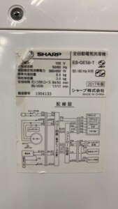 静岡県浜松市にてシャープ 全自動洗濯機 ES-GE5B-T 出張買取 2017年製 動作確認済みで査定しました