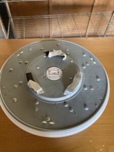 お預かりしたシーリングライトは、カバー表面に擦れや使用感が見られる状態でした。リモコン(型番 RE0202)も付属しており、動作確認を行ったところ点灯・切替機能は問題なく稼働しました。年式が2015年と経年はあるものの、実用的にはまだ使用可能な製品です。