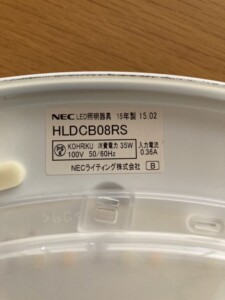 今回は京都市にお住まいの40代男性より、NEC製LEDシーリングライト HLDCB08RS(2015年製)を出張買取のご依頼いただきました。