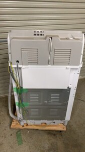 本体は天板や前面に小さな擦れが少し見られる程度で、全体的には清潔感のある良好なコンディションでした。槽内は目立つキズやカビの付着はなく、各ボタン・表示の反応も問題なし。乾燥・10分乾燥・洗乾一体の各コースを含め動作確認済みです。排水ホース・給水ホースが揃っており、すぐにお使いいただける付属状況でした。