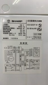 今回は福島県白河市にお住まいの40代女性より、SHARP全自動洗濯機 ES-GE5F-W(2021年製)を出張買取にてご依頼いただきました。