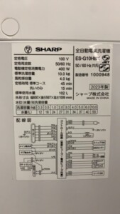今回は羽曳野市にお住まいの50代ご夫婦より2023年製のSHARP 全自動洗濯機 ES-G10HBKを出張買取にてご依頼いただきました。