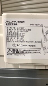 宮城県登米市でアイリスオーヤマ IAW-T806CW 洗濯機(使用感あり)を出張買取しました