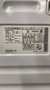 大阪府和泉市で日立ドラム式洗濯乾燥機 BD-SG110HL(2022年製)を出張買取しました
