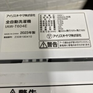 今回は島原市在住の30代女性よりアイリスオーヤマの全自動洗濯機 IAW-T604E(2023年製)を出張買取のご依頼として承りました。