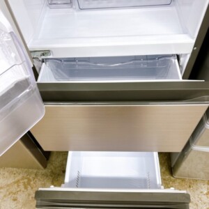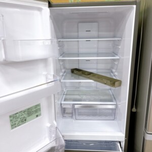 お預かりした冷蔵庫は外観に目立った傷やへこみもなく、全体的に美品といえる状態でした。庫内の棚や引き出しもきれいに使用されており、冷蔵・冷凍ともに動作は問題なく良好。人気のステンレス調デザインで、キッチンにも馴染みやすいモデルです。