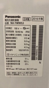 千葉県木更津市にてパナソニック(Panasonic)製洗濯乾燥機 NA-FW90S3を出張買取・査定しました