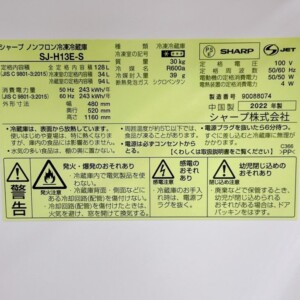 今回は奈良県香芝市にお住まいの20代男性会社員の方よりシャープの冷凍冷蔵庫 SJ-H13E-S(2022年製)を出張買取にてご依頼いただきました。