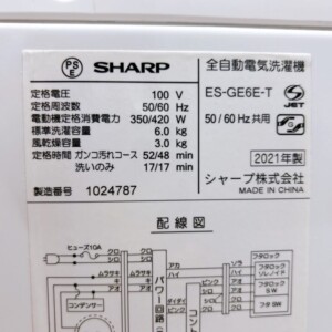 沖縄県沖縄市でシャープ洗濯機 ES-GE6E-T を出張買取|6.0kgタイプを買取査定