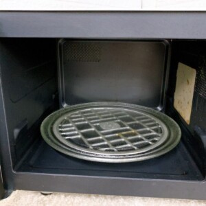お送りいただいたYRS-G160V(W)は、外観には目立った損傷はなく、動作も問題ありませんでした。ただし庫内には加熱による焦げ付きや汚れが一部残っている状態でした。ガラスターンテーブルは割れや欠けはなく正常に回転します。