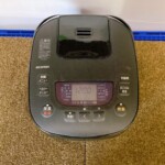 お預かりした炊飯器は、外観に使用に伴う汚れや色あせが見られ、庫内にも若干の焦げ跡や使用感が残っていました。動作は問題なく電源も入り、炊飯機能自体は使用可能でしたが、全体的に再販向きの状態とは言えませんでした。付属品として電源コードやしゃもじが同梱されていました。