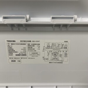 今回は宮崎県都城市にお住まいの40代女性・主婦・夫婦世帯・持ち家(一戸建て)のお客様より、東芝 全自動洗濯機 AW-45M7(2020年製)を出張買取にてご依頼いただきました。
