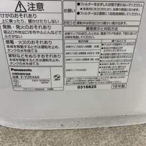 東京都江戸川区でパナソニック除湿機 F-YZRX60 2018年製を出張買取|使用感ありでも動作品を査定