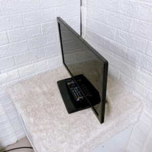 お預かりした液晶テレビは、外観に使用感や細かなキズが見られるものの、動作確認では地デジ受信・HDMI入力ともに問題なく使用できました。純正リモコンも付属しており、日常使用に支障のない状態でした。