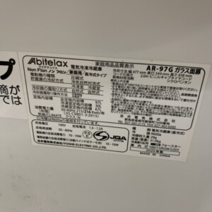 大分県豊後大野市にてAbitelax冷蔵庫 AR-97G ガラス面扉を出張買取|きれいな状態で高価査定しました