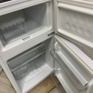 事前に電話でご依頼をいただき、搬出時にはスタッフがアパートの玄関からスムーズに運び出しました。冷蔵庫は比較的コンパクトなサイズ感(容量97L・高さ83.8cm)で、女性のお客様でも扱いやすいモデルですが、自身で処分するのは手間がかかるため、出張買取をご利用いただきました。