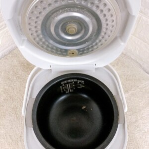 お預かりした炊飯器は外装に使用に伴う擦れや汚れがあり、内釜には焦げ付きや細かな傷が見受けられました。ただし、炊飯機能自体は問題なく動作しており、全体的に実用可能な状態でした。付属品は揃っておらず本体のみの引き取りとなりました。