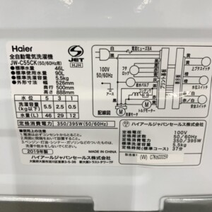 栃木県那須塩原市でHaier全自動洗濯機 JW-C55CK 5.5kg 出張買取 2019年製 状態良好 査定しました