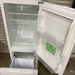 査定させて頂いた冷蔵庫は外観の裏面は使用上の汚れがありましたが表面と庫内は比較的綺麗な状態で、大きく目立つ傷や汚れは見られませんでした。総容量154Lで冷蔵室111L・冷凍室43Lとコンパクトながら日常使いに十分なサイズ感です。動作確認においても冷却機能は問題なく庫内ライトやドアポケットの破損もなく使用感は少ない印象でした。