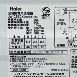 松原市でHaier洗濯機 JW-C55CKを出張買取|使用感あり 買取査定