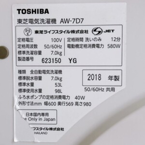 島根県松江市で東芝全自動洗濯機 AW-7D7(2018年製)を出張買取|やや使用感ありでも高価査定