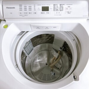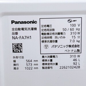 お買取した洗濯機NA-FA7H1は、外装や槽内ともに大きく目立った傷や汚れがなく清潔感のある状態でした。排水ホースや電源コードも破損なく揃っており全体的に丁寧に使用されていたことが分かります。2022年製モデルで中古市場でも十分に需要のある製品です。