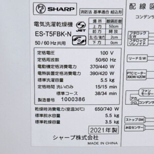 今回は東京都新宿区にお住まいの30代女性よりシャープ 電気洗濯乾燥機 ES-T5FBK-N(2021年製)を出張買取にてご依頼いただきました。