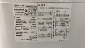 福岡県古賀市にてシャープ洗濯乾燥機 ES-TX5FJ-W 2022年製を出張買取しました