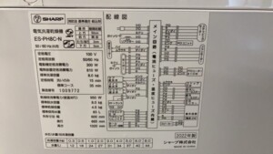千葉県野田市でシャープ洗濯乾燥機 ES-PH8C-N 2022年製を出張買取しました